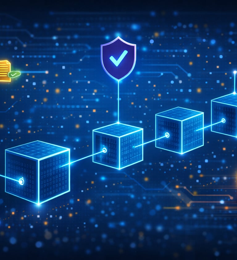 Blockchain adalah sistem pencatatan digital yang tersimpan di banyak komputer sekaligus. Setiap transaksi dicatat dalam blok data, kemudian blok-blok tersebut saling terhubung membentuk rantai.