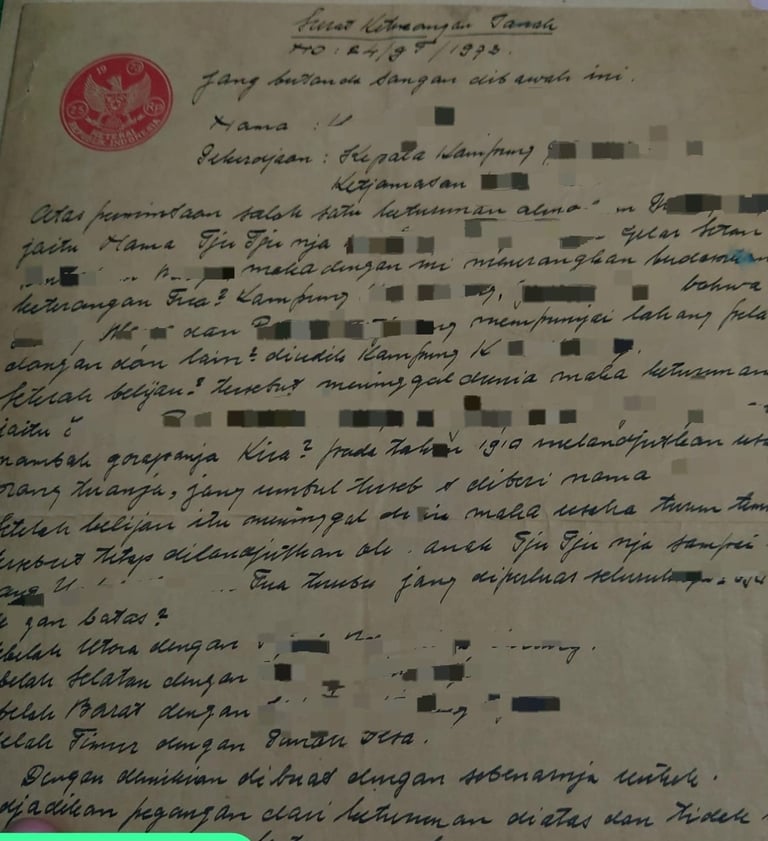 Di tengah perdebatan tentang legalitas dan status tanah, arsip lama sering kali luput dari perhatian. Padahal, dokumen-dokumen ini menyimpan jejak bagaimana tanah pernah dipahami, dibatasi, dan diwariskan secara sadar oleh generasi sebelumnya.